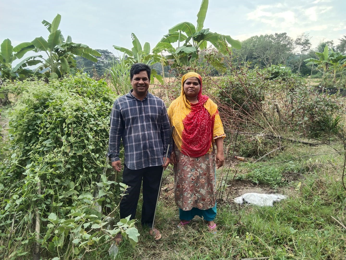 নিজেদের ক্ষেতে শেখ মোহাম্মদ মাঈনুদ্দিন ও তার স্ত্রী রেনু আক্তার